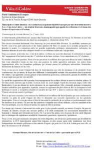 Communiqué – Les « Voix de la Colère », une liste communiste qui ne fait pas de compromis